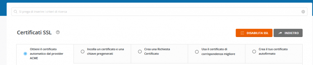 6. Seleziona la prima voce “Ottieni il certificato automatico dal provider ACME” e salva: